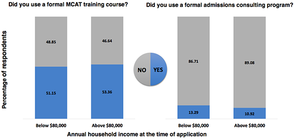 The two studies which included a random and representative sample of medical students and residents had a margin of error of +/-5% and suggest that: admissions appears to favor the wealthy (Fig. 2); the wealthy are the most represented group regardless of admissions screening tool used to select them (Fig. 3); 94% of accepted applicants would support a new and improve admissions screening tool (Fig. 4); wealth does not correlate with the probability to use admissions preparation services (Fig. 5).